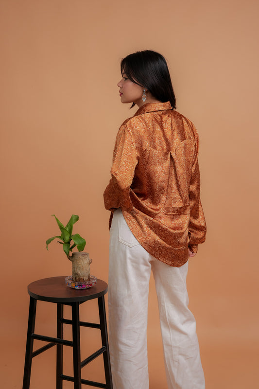 CHARVI- RUST SATIN SHIRT