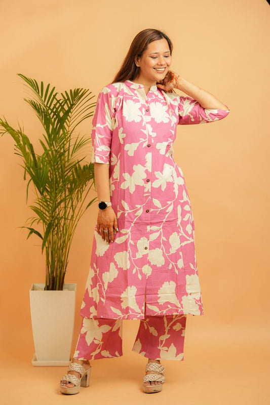 LAKHI- NATURAL & PINK COTTON FLEX CO-ORD SET