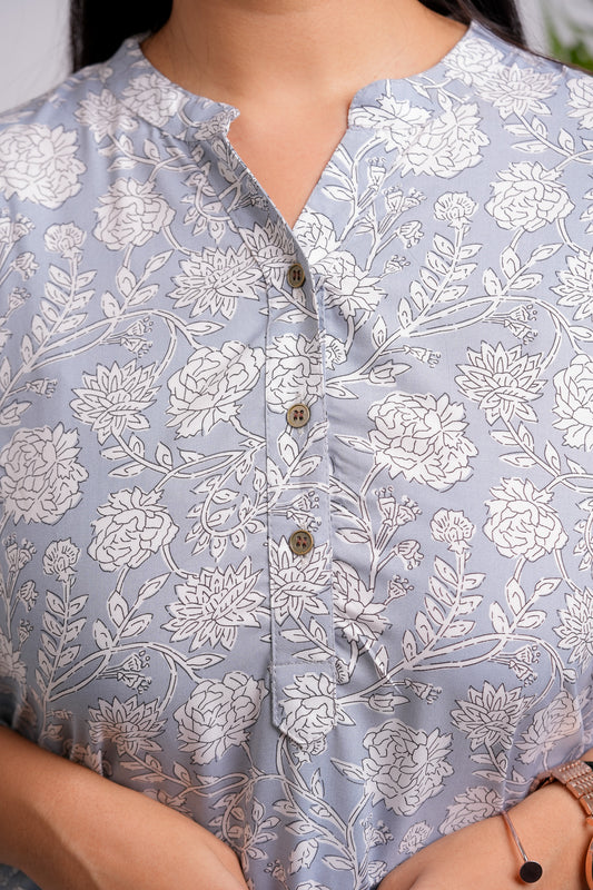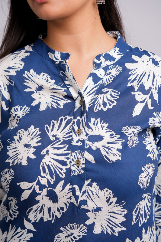 LINA - DARK BLUE CO-ORD SET WITH BOTANICAL PRINT