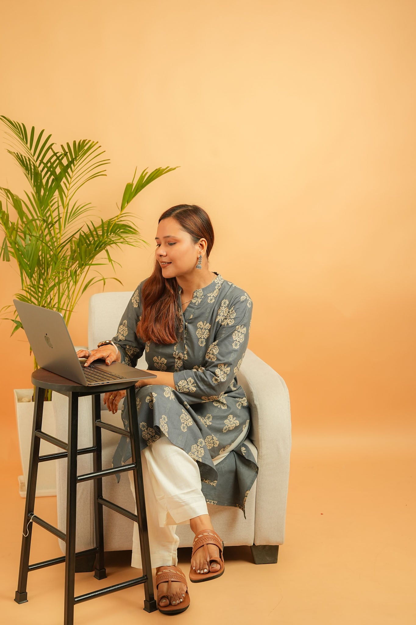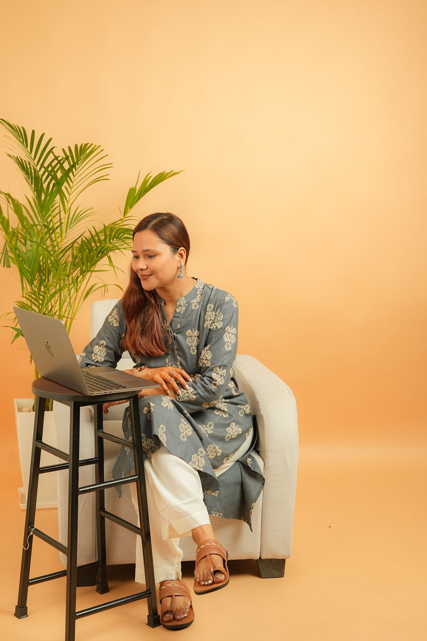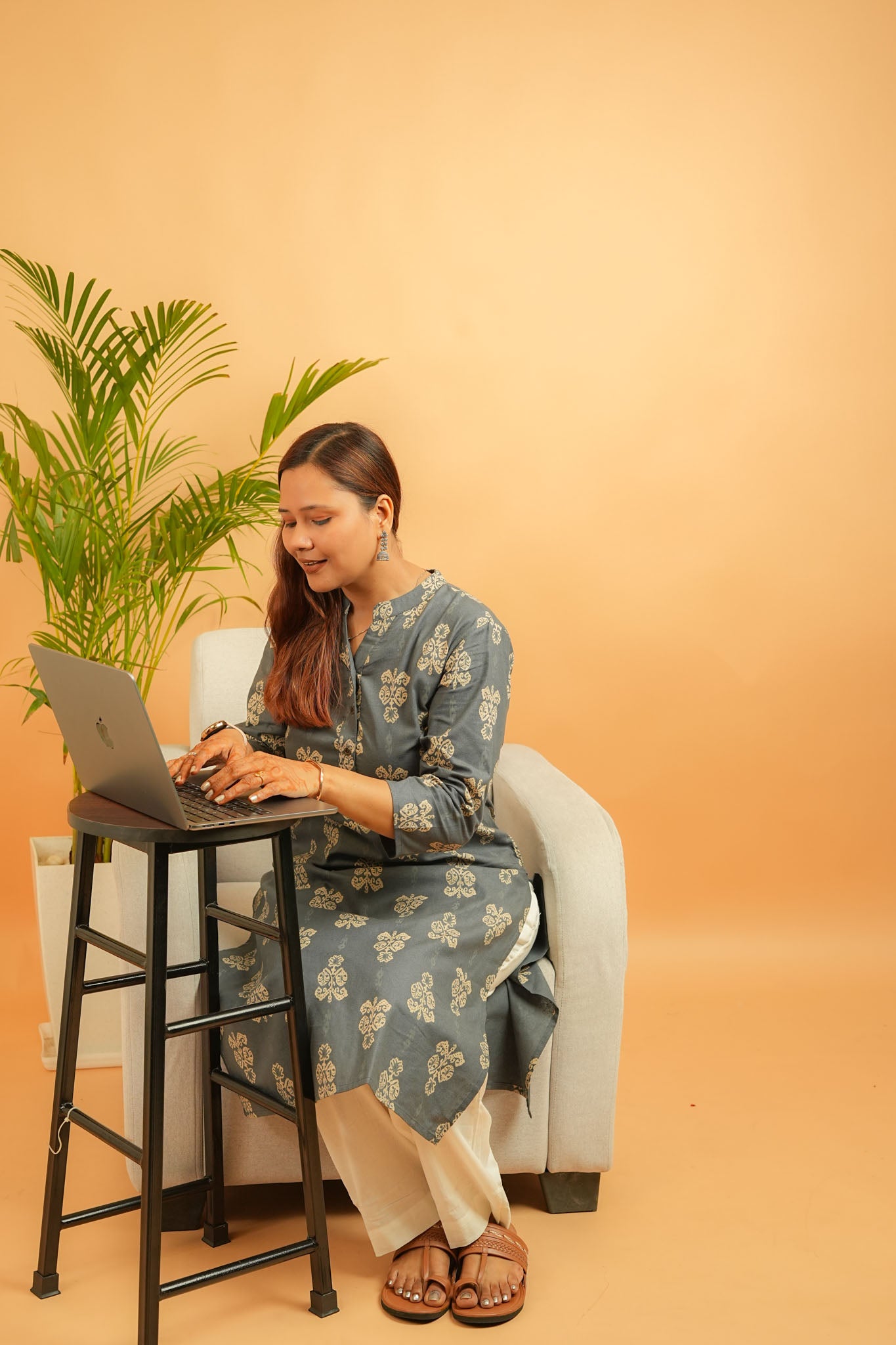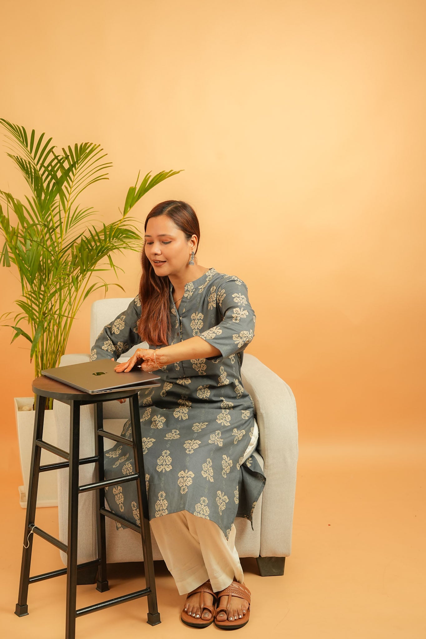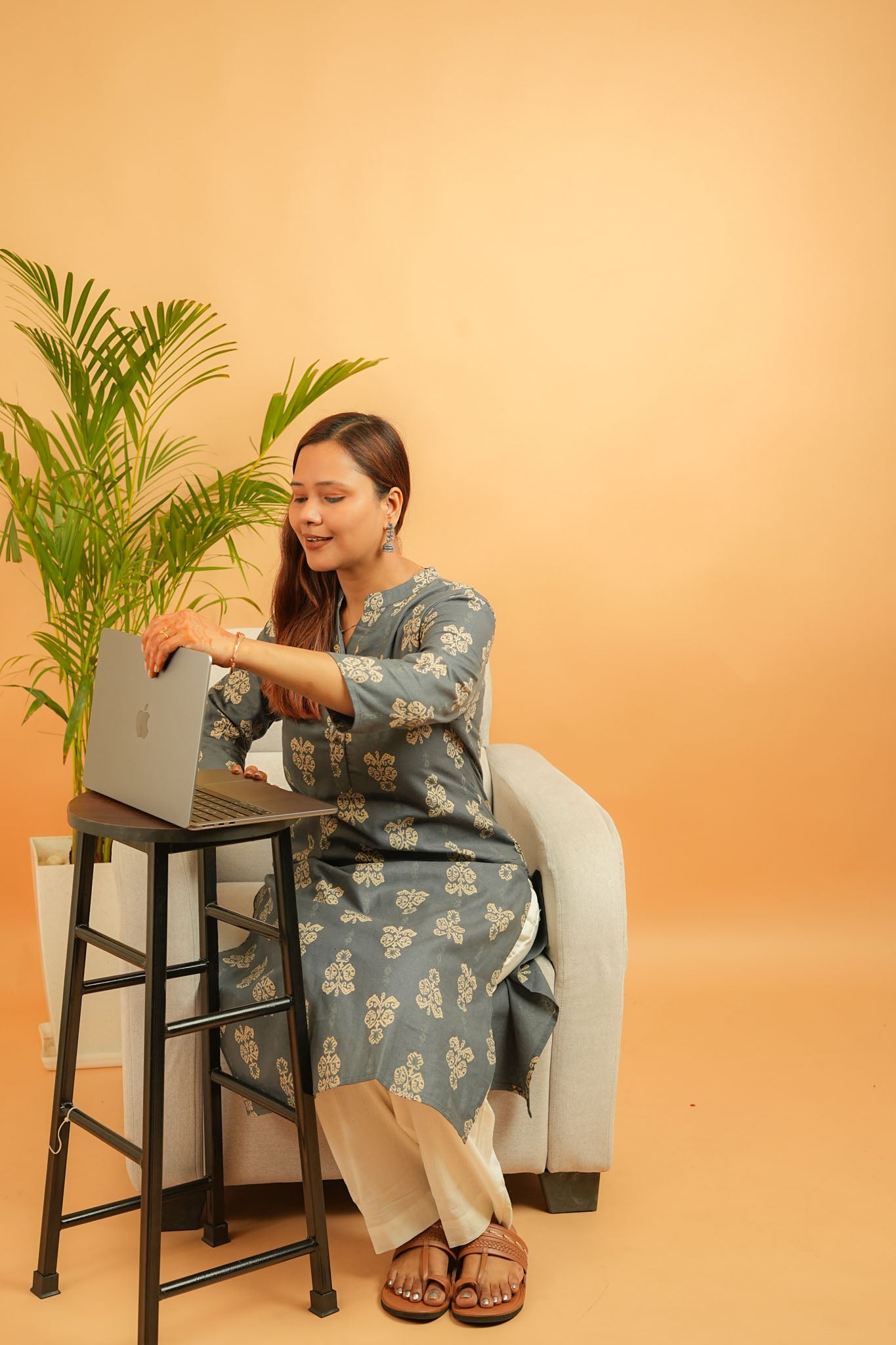 KANIRA - DARK GREY COTTON FLEX KURTA