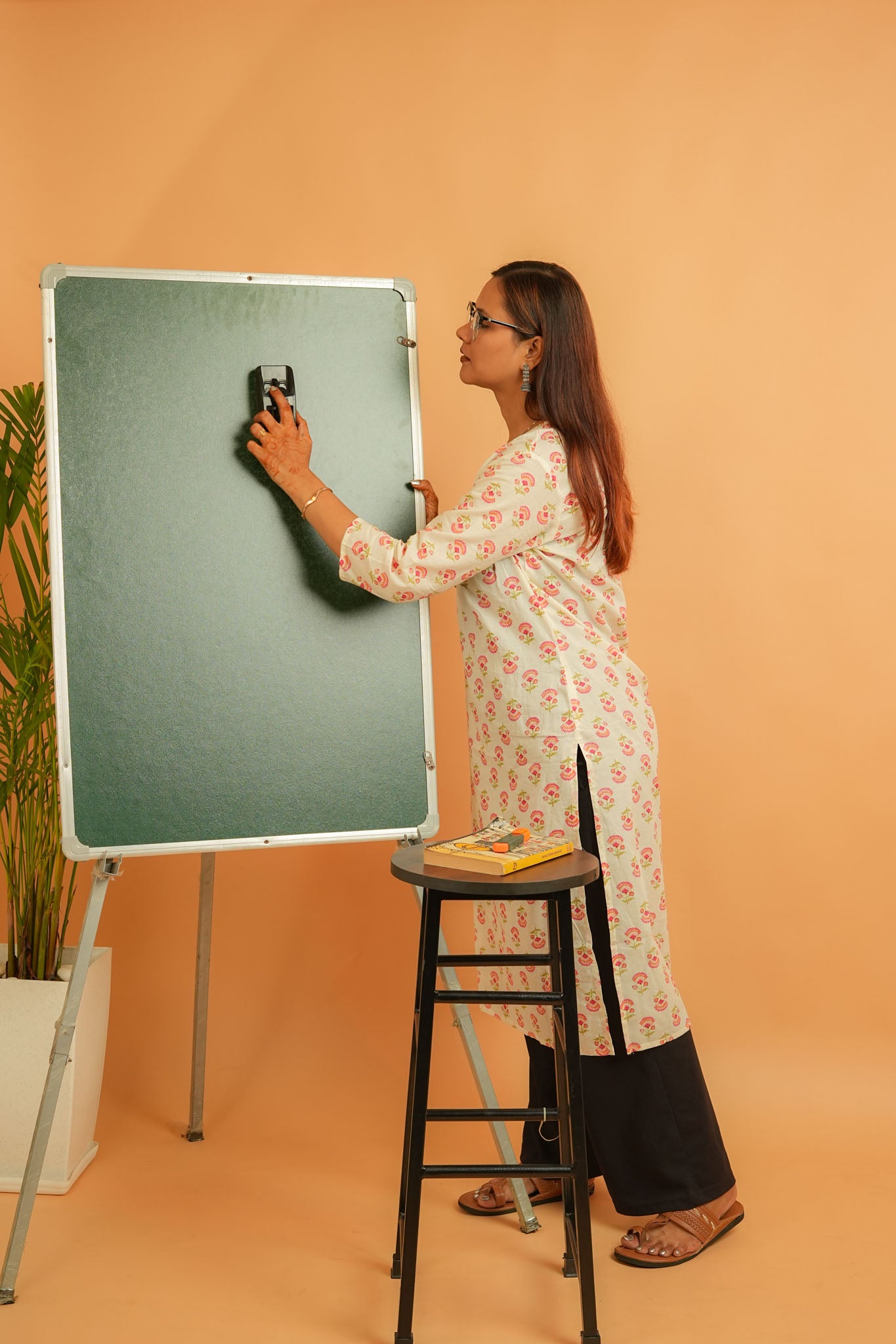 Kohi’s red booti print pops beautifully on its cream base of 100% cotton. It’s functional too, with handy side pockets built in. A timeless choice for casual workdays or quick errands. Pair with jeans or cotton pants for an effortless look.