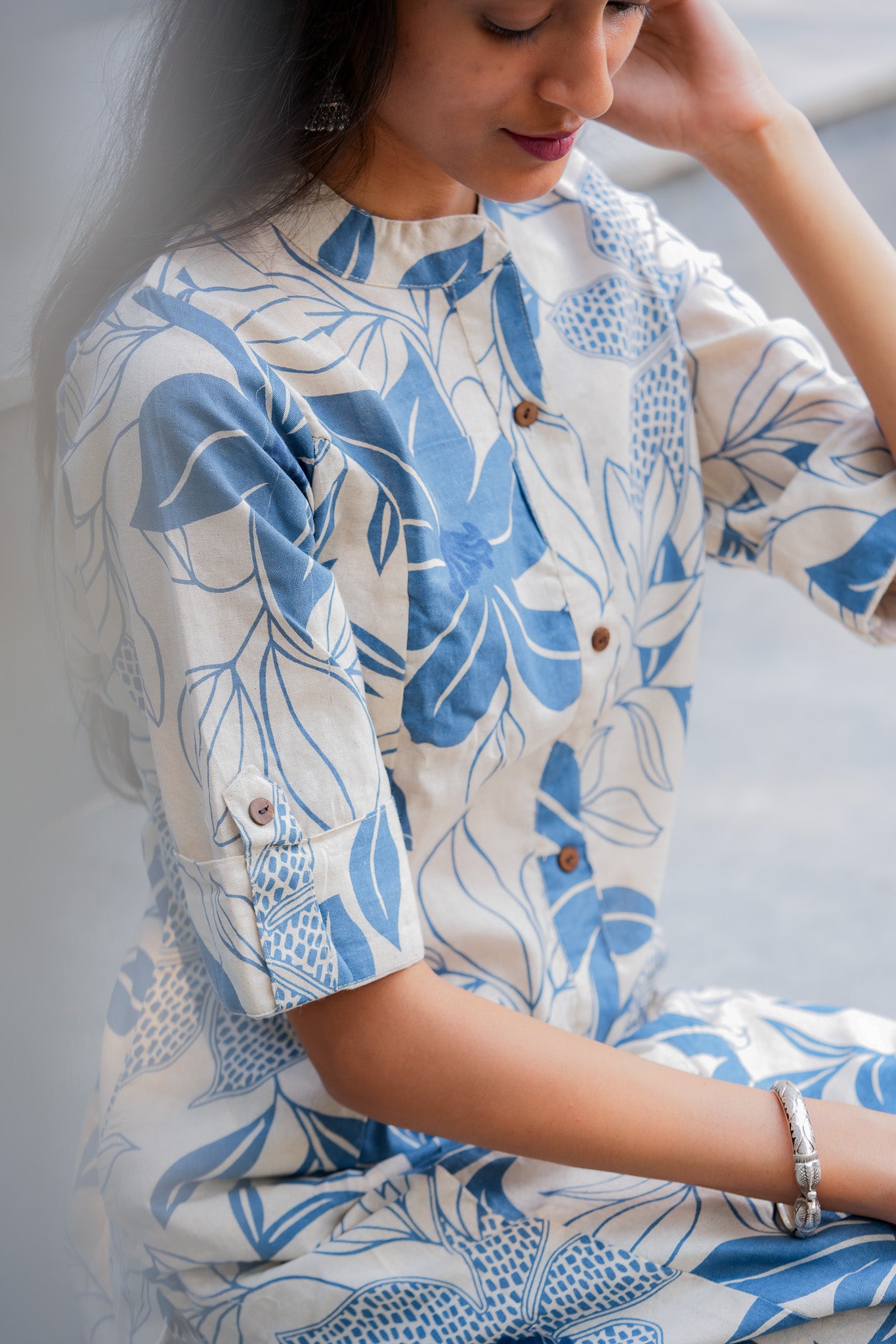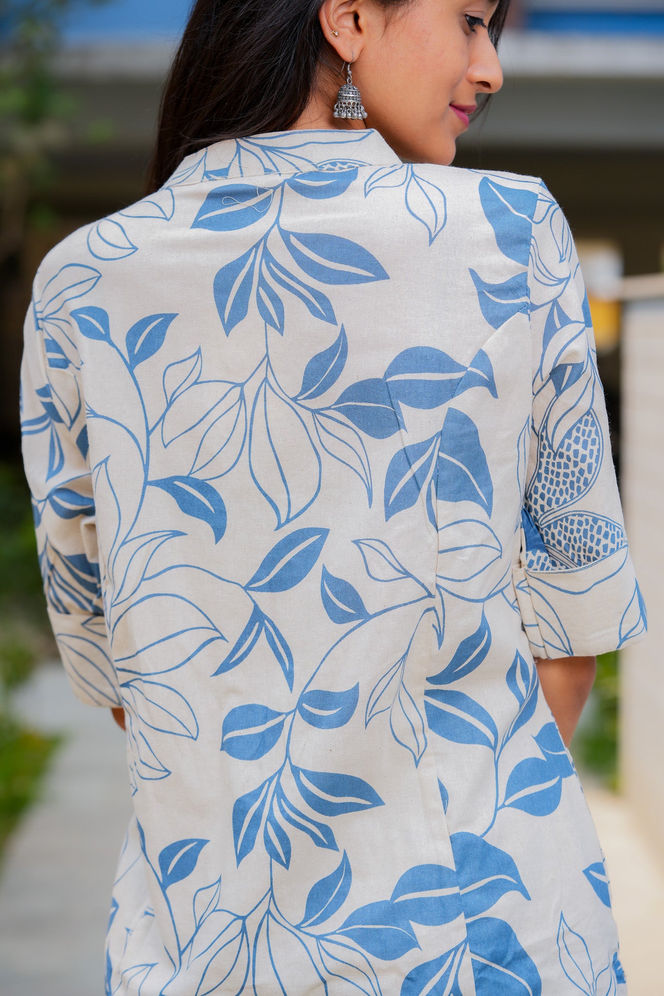 LATHYA - BLUE COLOUR CO-ORD SET WITH BAND COLLAR