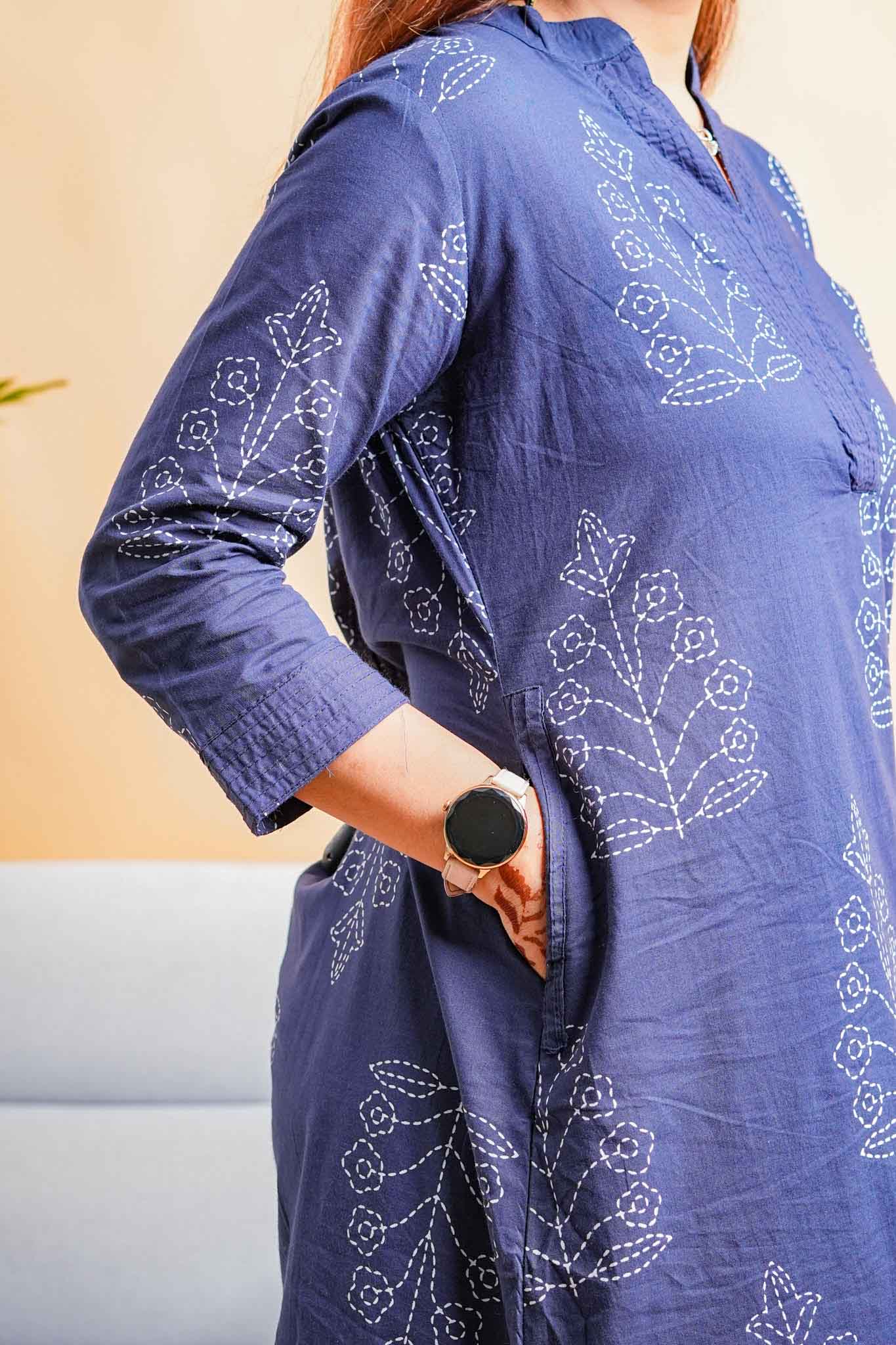 Deep navy-blue premium cotton co-ord set in an A-line fit. Sophisticated and versatile.