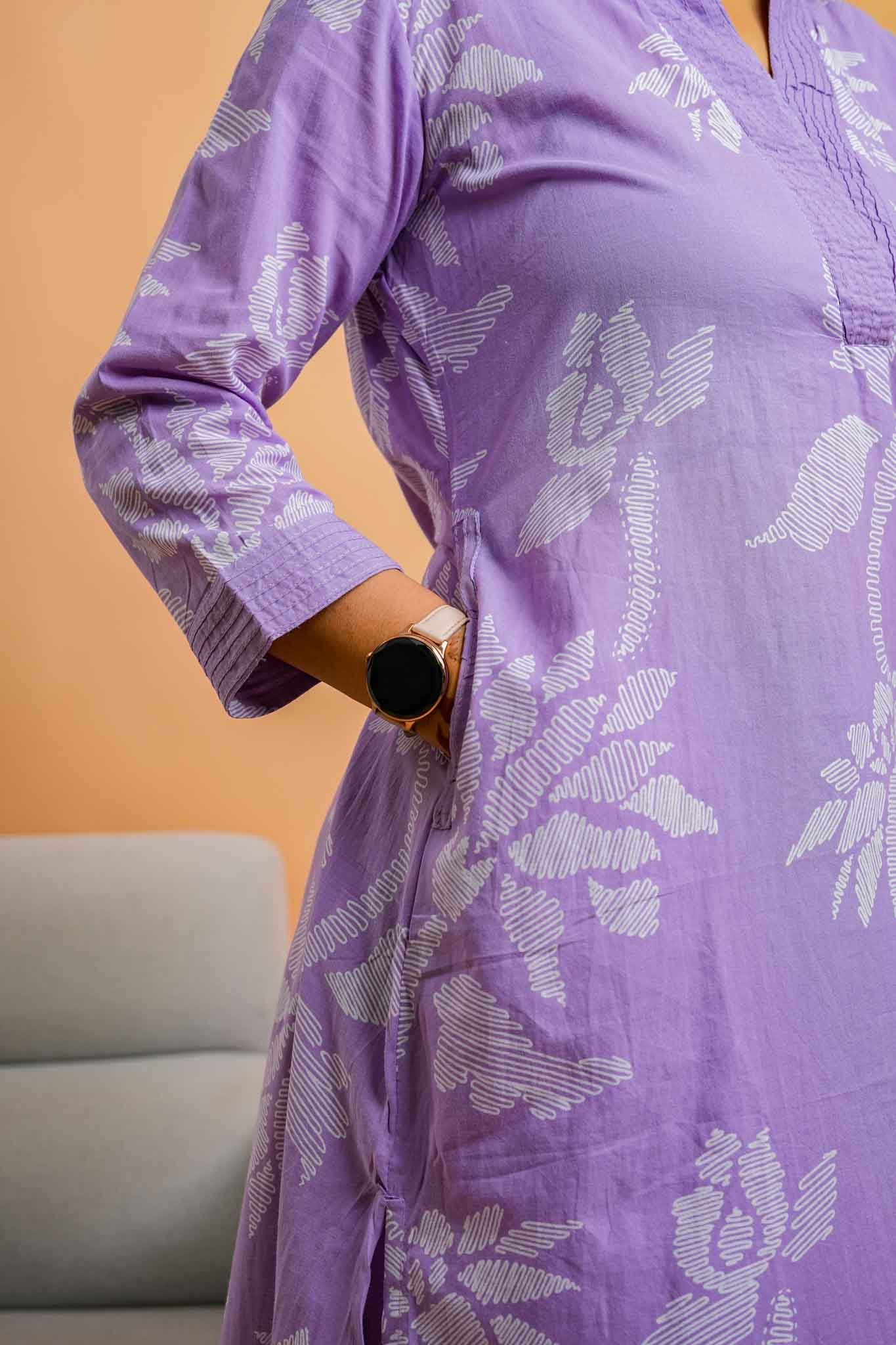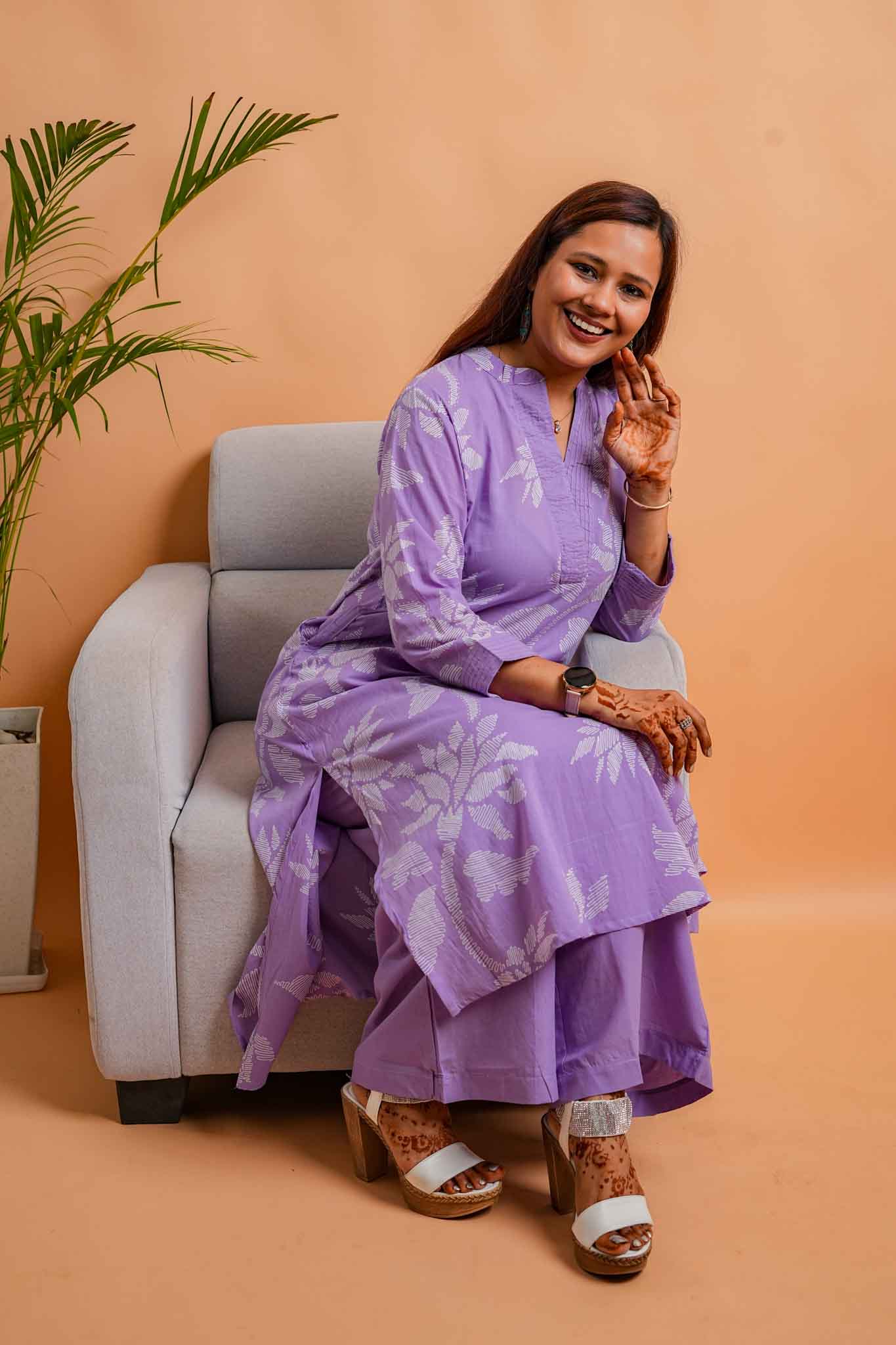 Elegant lilac premium cotton co-ord set with an A-line fit. Soft and graceful for any occasion.