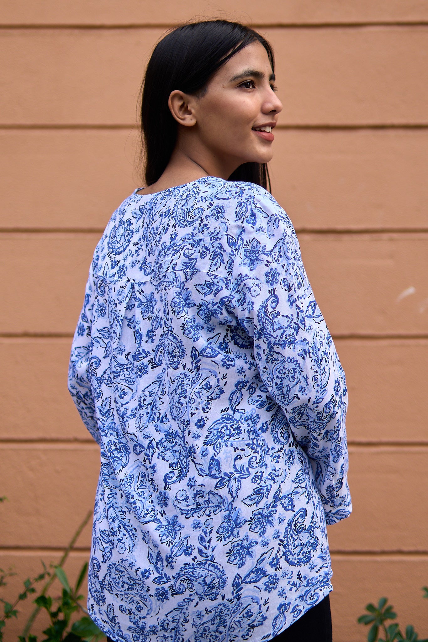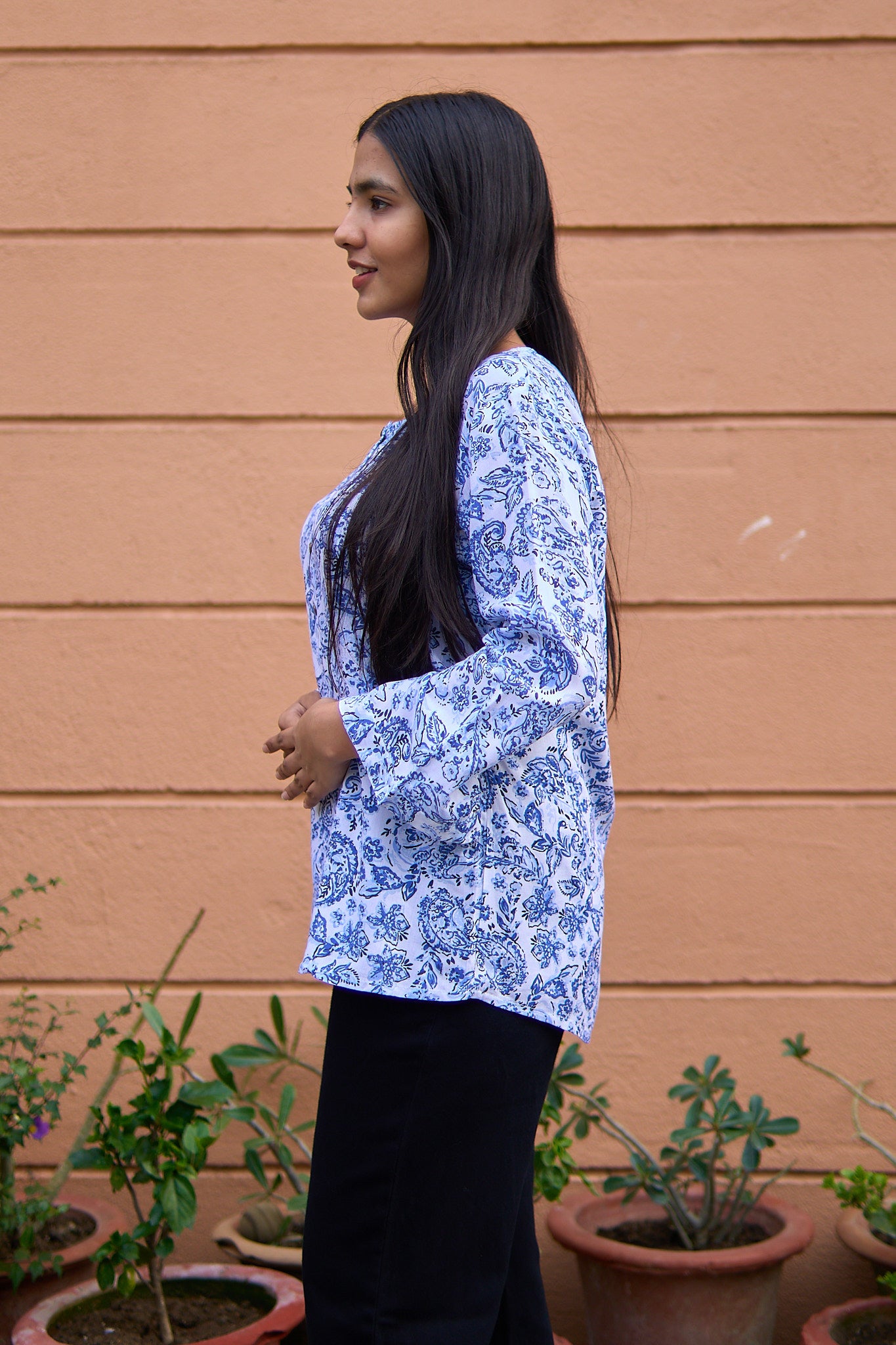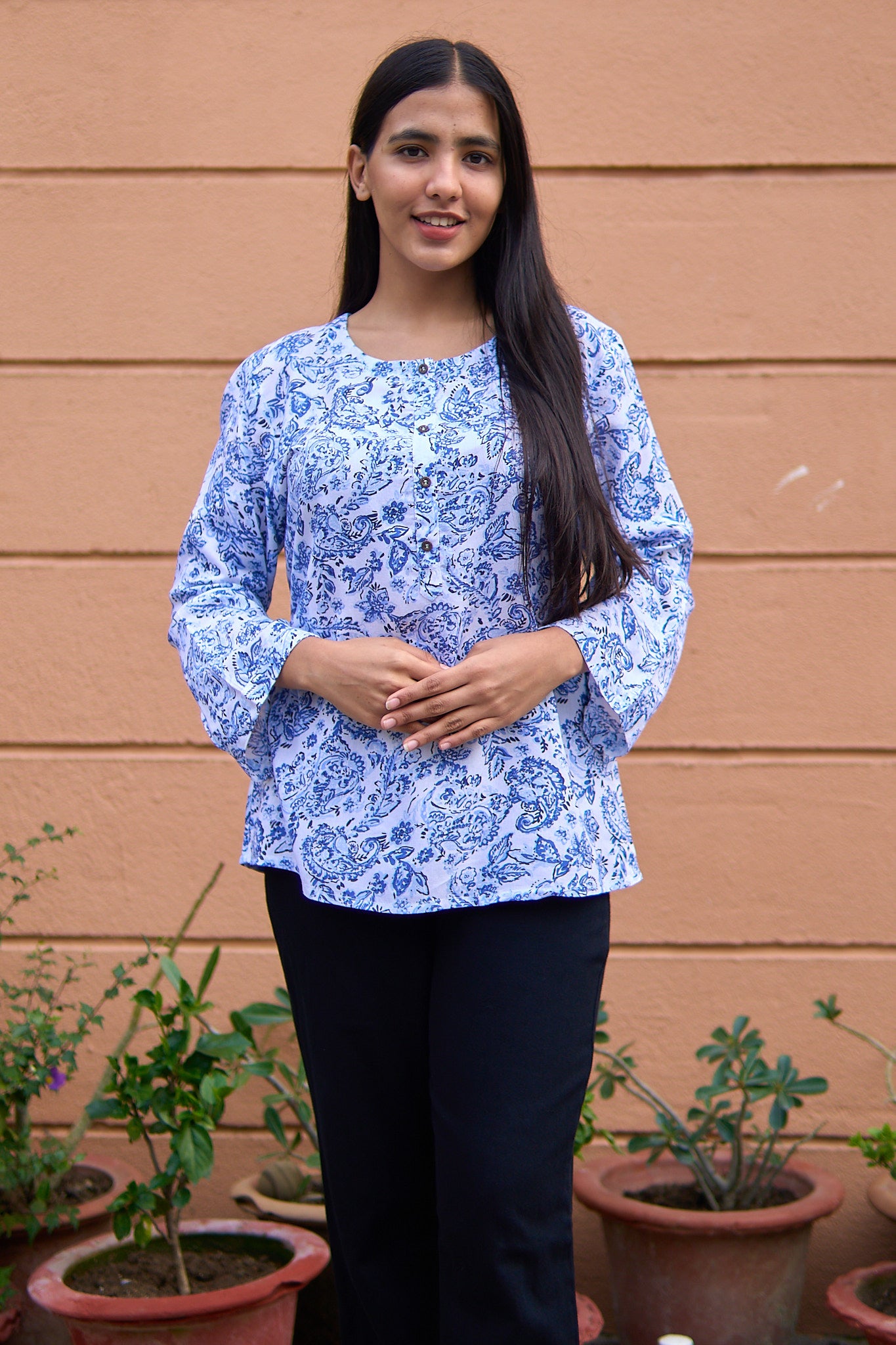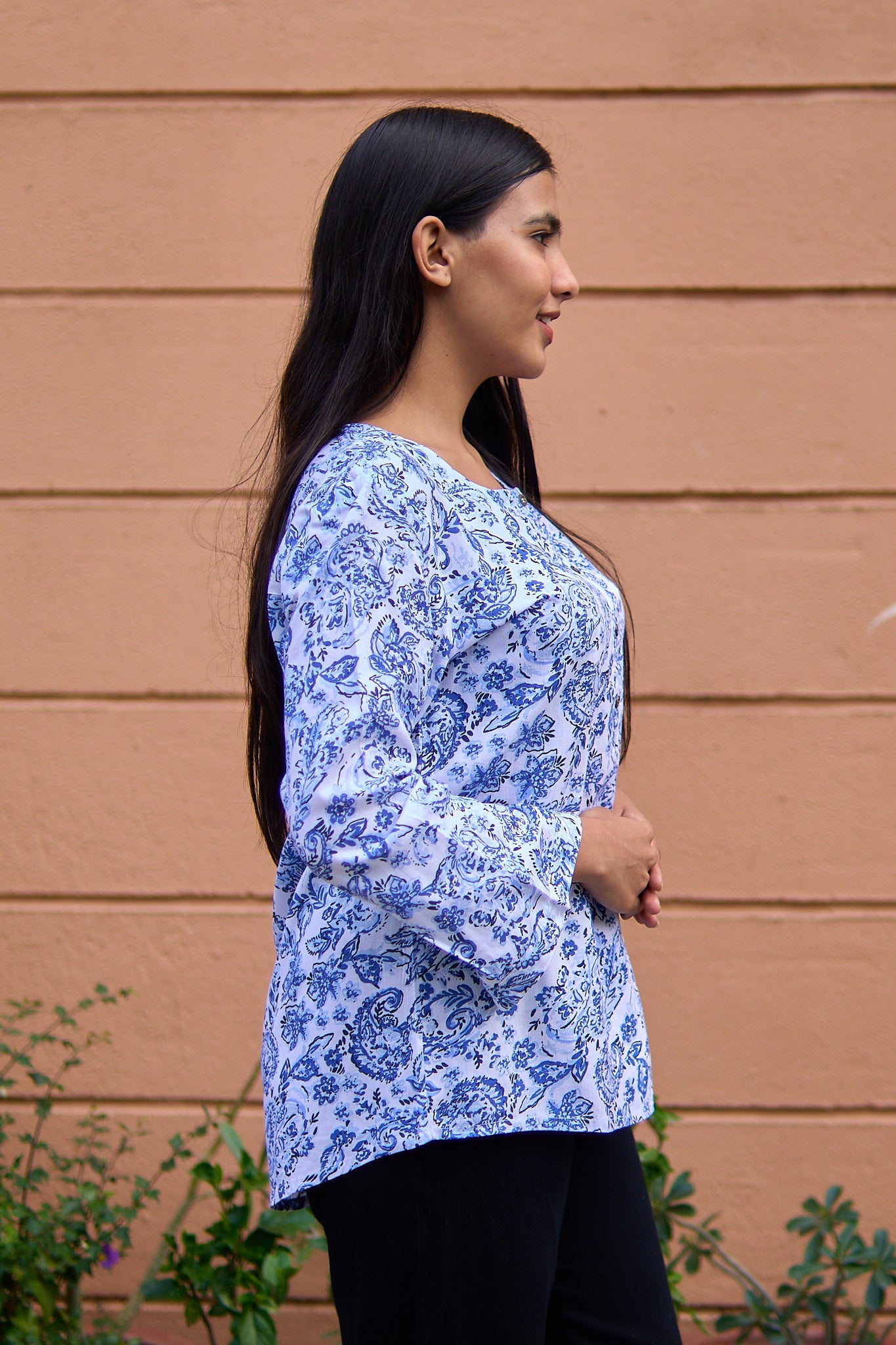 Elevate your wardrobe with the timeless elegance of our navy blue tunic. Crafted from soft breathable rayon fabric. The smooth fluis drape of the fabric creates a flattering silhouette,making it ideal for both casual and dressier occasion. Featuring it with a v neck collar,this tunic can be easily paired with cotton pants,jeans and pallazos.