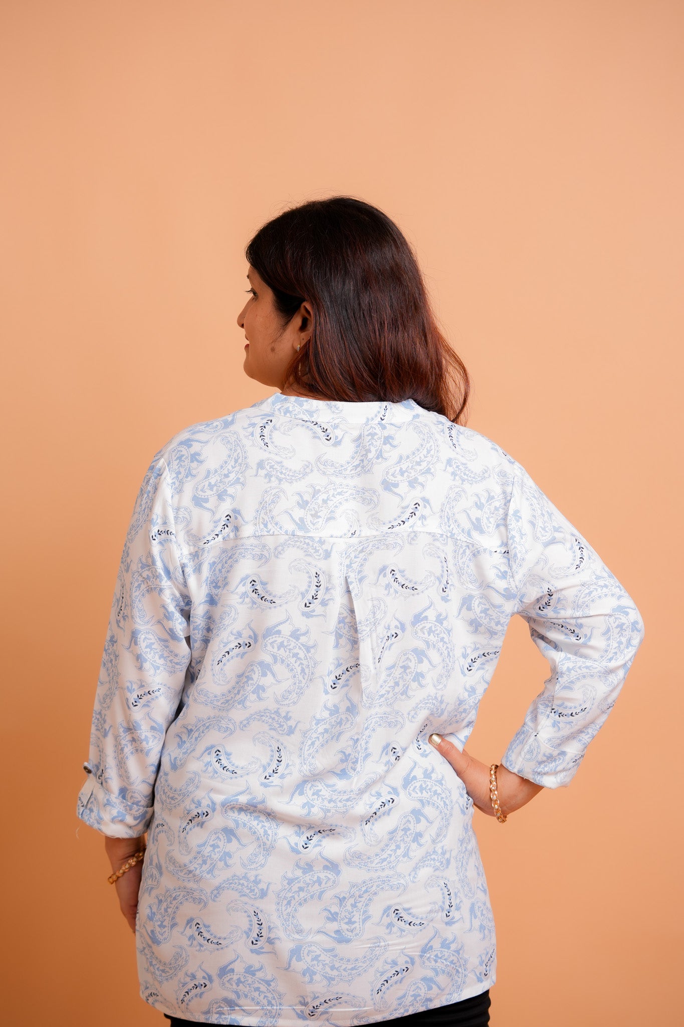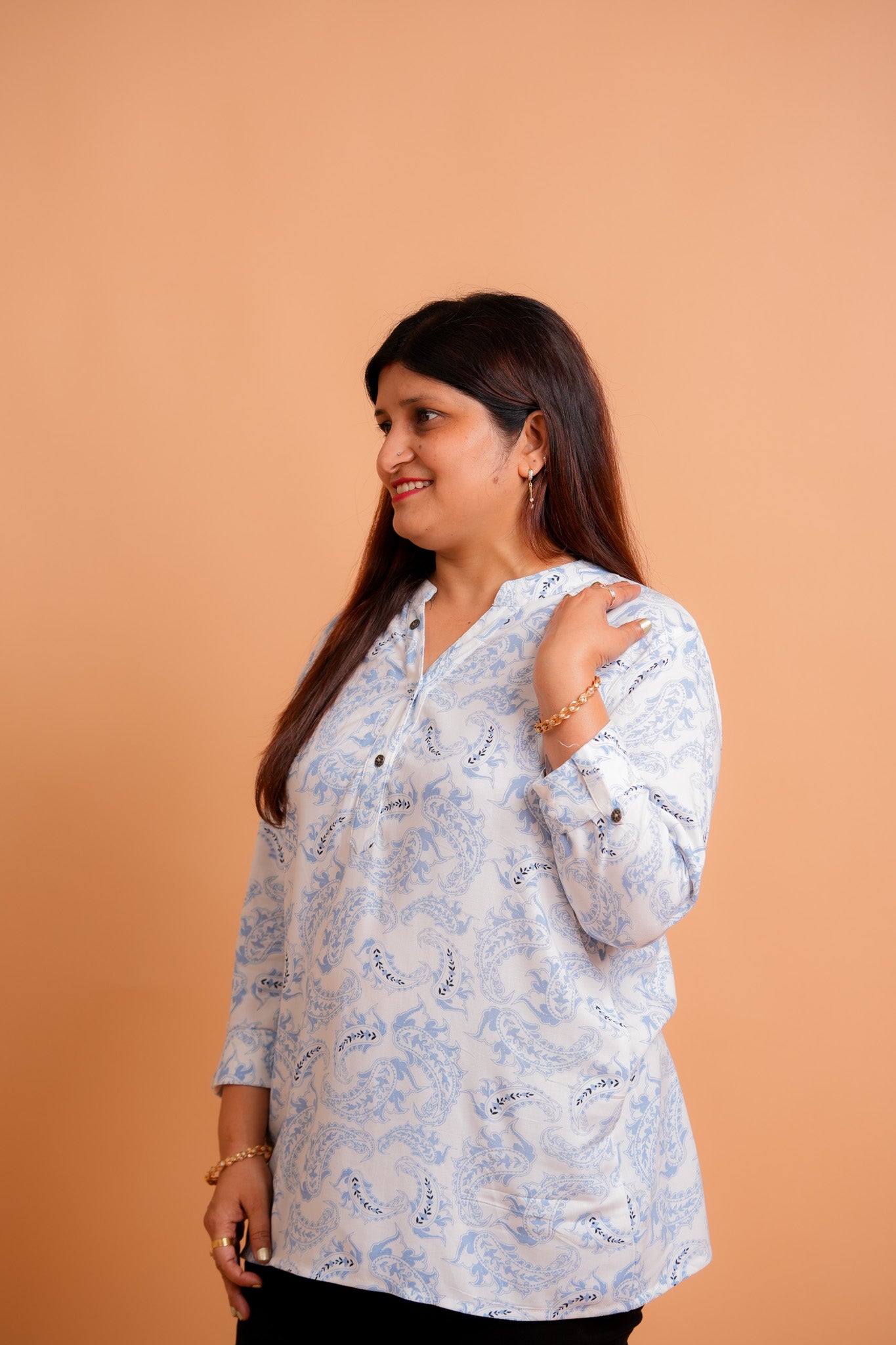 PRAKHYA- WHITE AND BLUE RAYON TUNIC