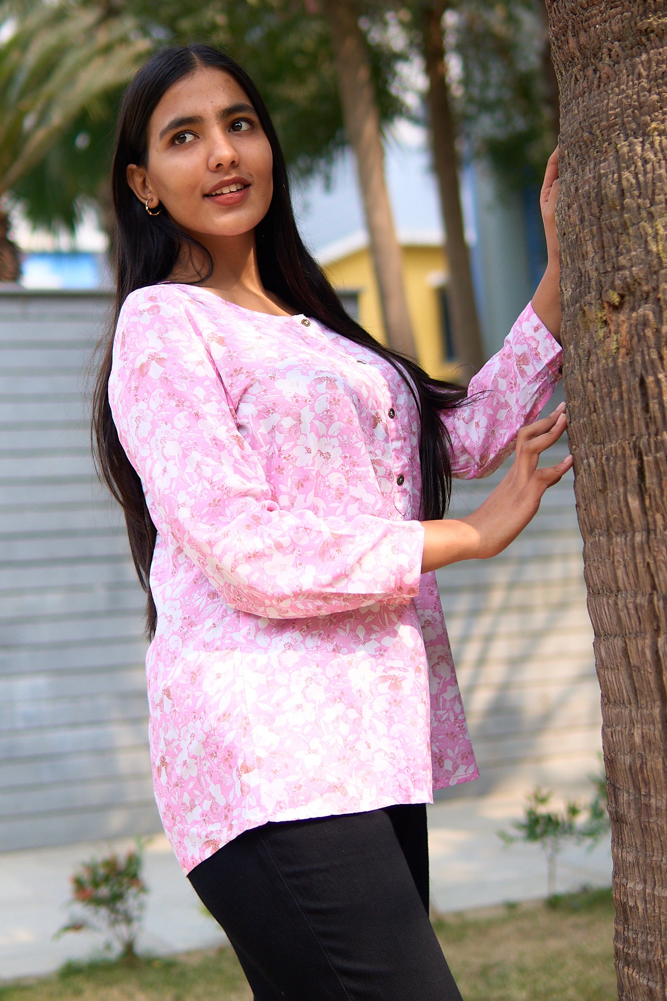Elevate your wardrobe with the timeless elegance of our navy blue tunic. Crafted from soft breathable rayon fabric. The smooth fluis drape of the fabric creates a flattering silhouette,making it ideal for both casual and dressier occasion. Featuring it with a v neck collar,this tunic can be easily paired with cotton pants,jeans and pallazos.